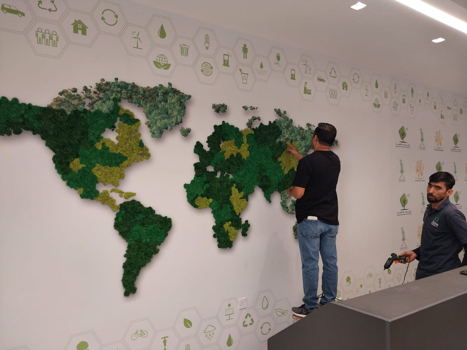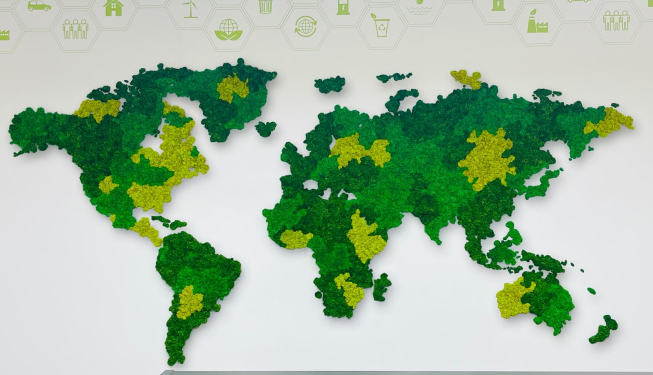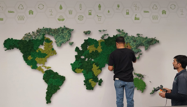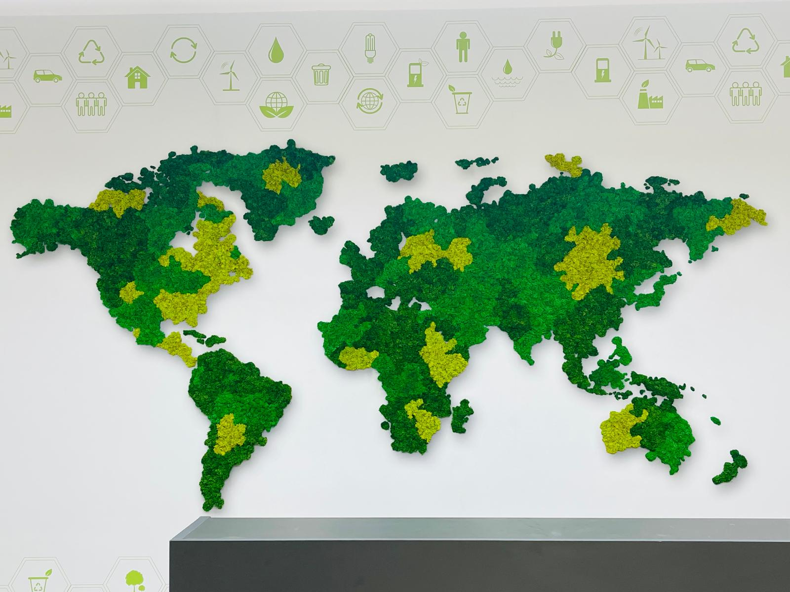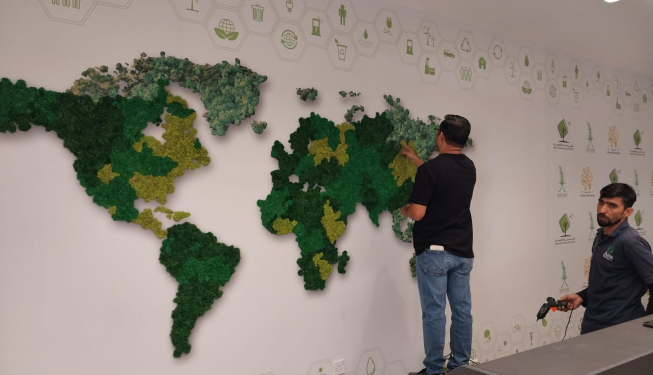 World Map Installation with Preserved Reindeer Moss at Qatar Arts Center