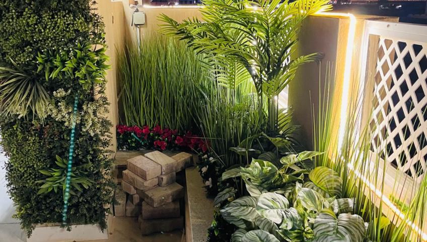 LED Strip Lighting with Artificial Green Wall Installation at LIFE HUB Centre in Msheireb, Doha